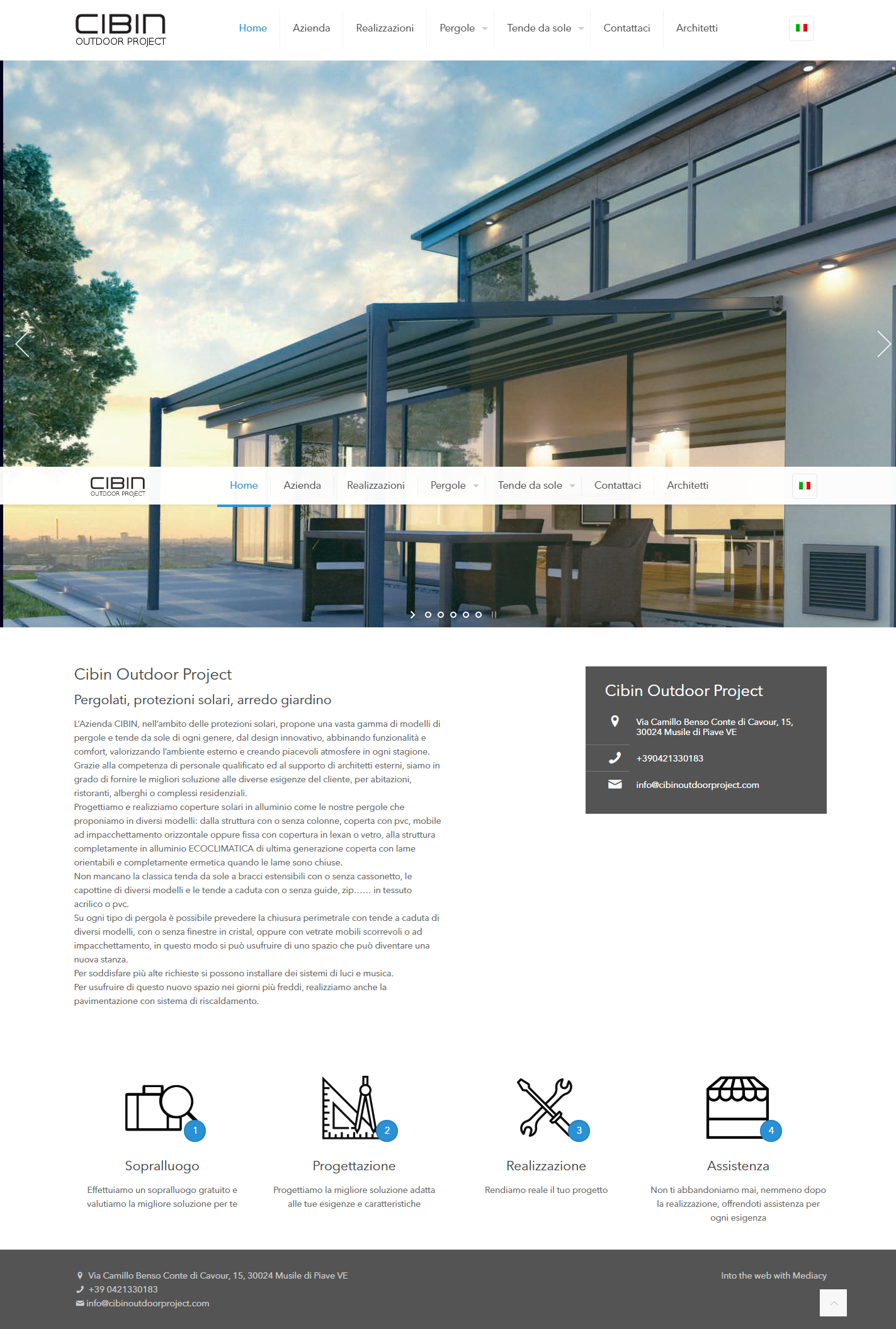 Nuovo sito per Cibin Tende, azienda per pergolati, protezioni solari e arredo giardino a Venezia, San Donà di Piave e Jesolo.